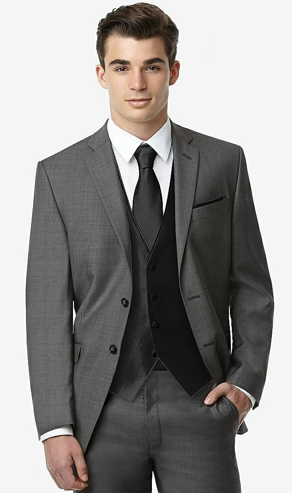 Front View - Black Classic Yarn-Dyed Tuxedo Vest by After Six