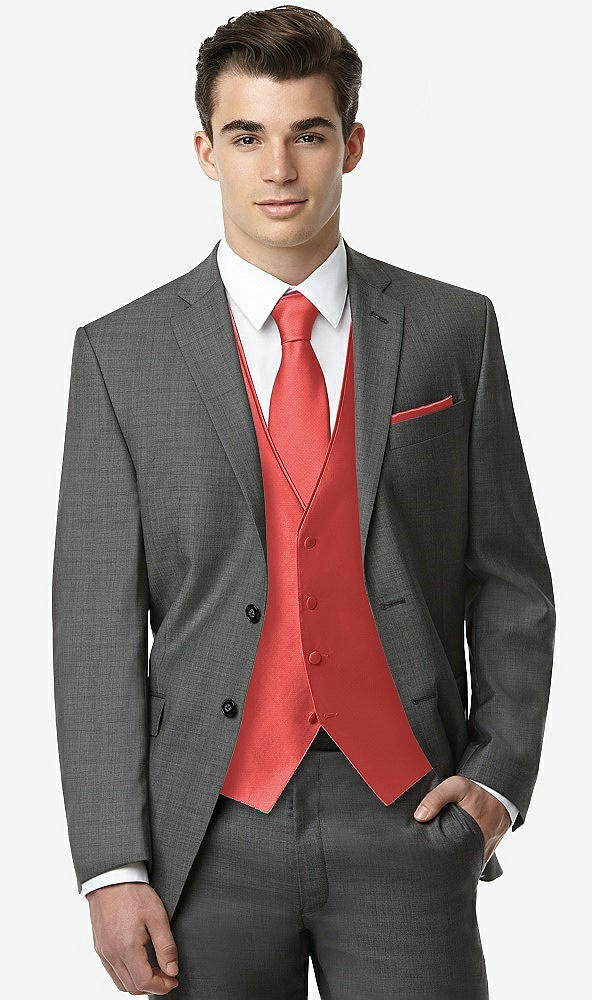 Classic Yarn-Dyed Tuxedo Vest by After Six in Perfect Coral