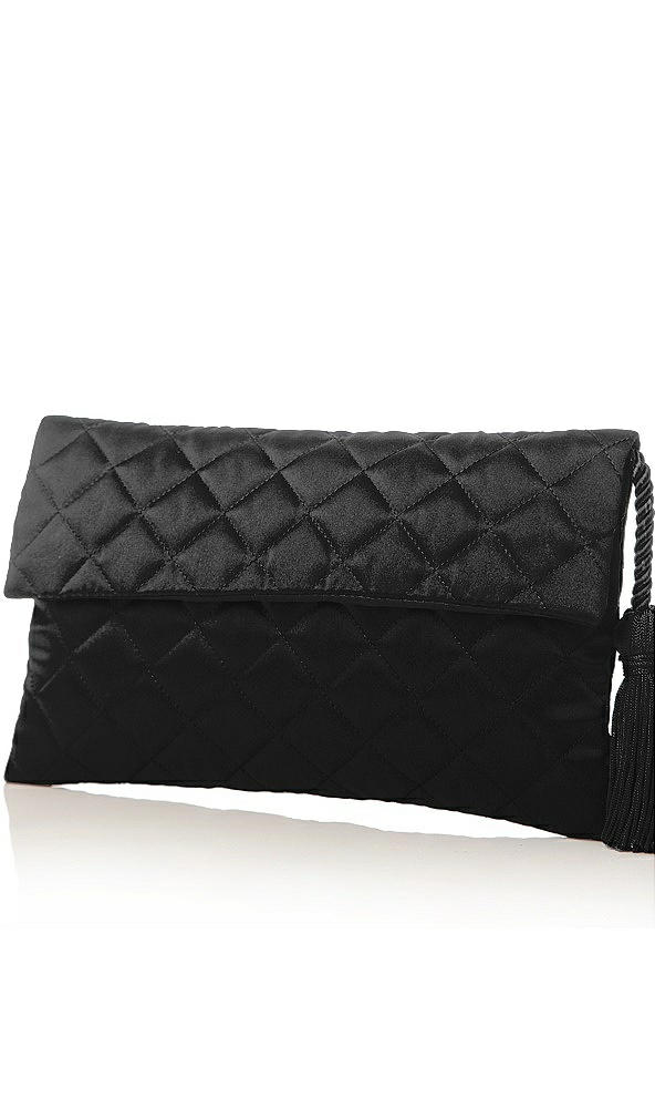 Front View - Black Quilted Envelope Clutch with Tassel Detail