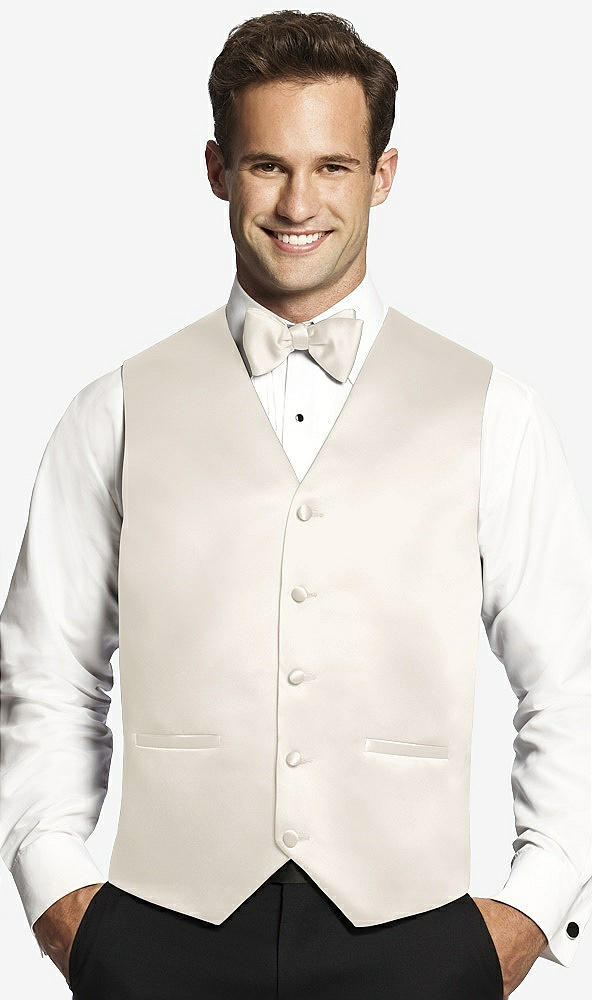 Front View - Ivory Matte Satin Tuxedo Vests by After Six