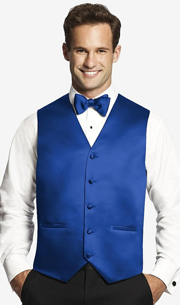 Front View - Sapphire Matte Satin Tuxedo Vests by After Six