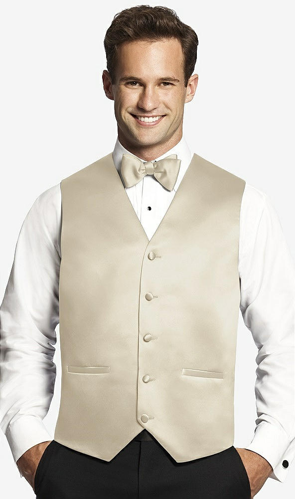 Front View - Champagne Matte Satin Tuxedo Vests by After Six