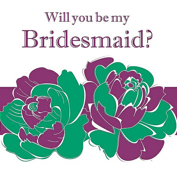 Will You Be My Bridesmaid Card - 2 Color Flowers in Shamrock & Persian Plum