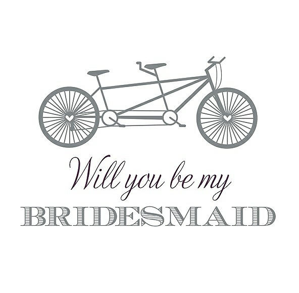 Will You Be My Bridesmaid Card - Bike in Pewter & Aubergine