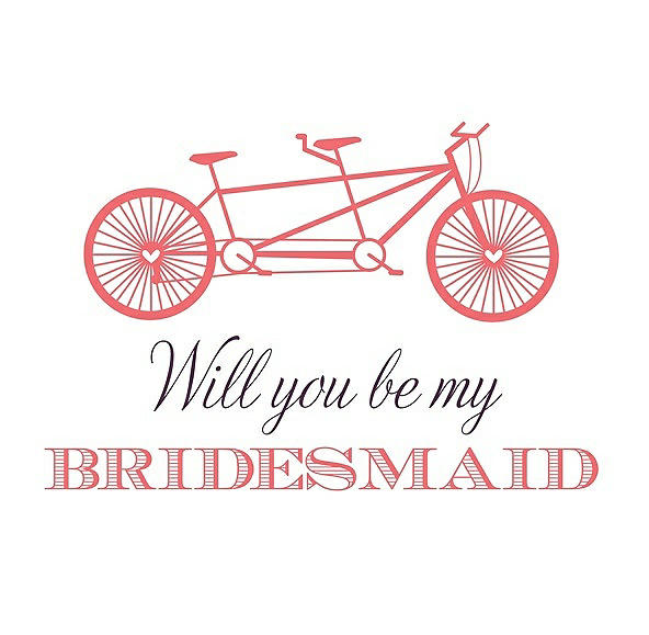 Will You Be My Bridesmaid Card - Bike in Coral & Aubergine