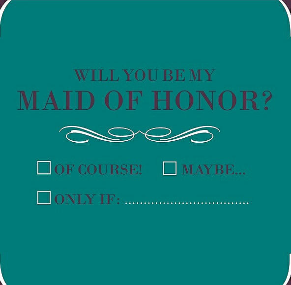 Will You Be My Maid of Honor Card - Checkbox in Jade & Italian Plum