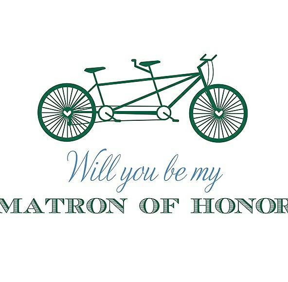 Will You Be My Matron of Honor Card - Bike in Pine Green & Cornflower