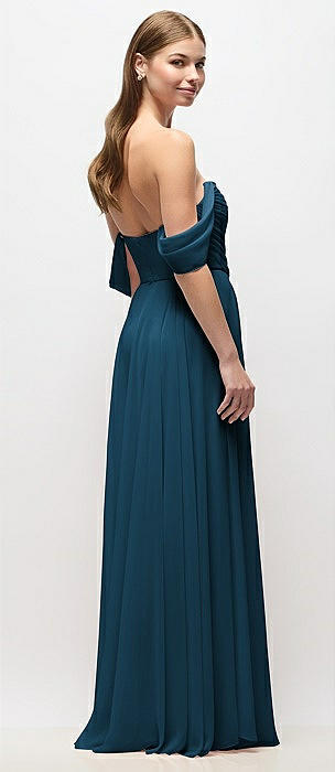 Chiffon Corset Maxi Dress with Removable Off-the-Shoulder Swags in atlantic blue