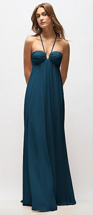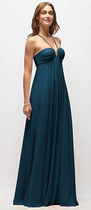 Empire Waist Chiffon Halter Maxi Dress with Convertible Spaghetti Straps in atlantic blue