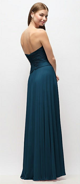 Strapless Pleated Surplice Chiffon Maxi Dress with A-Line Skirt in atlantic blue