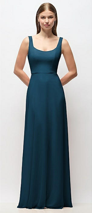 Scoop Neck Tank Strap Chiffon Maxi Dress in atlantic blue