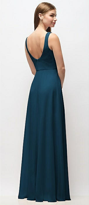 Deep V-Neck Chiffon Maxi Dress in atlantic blue