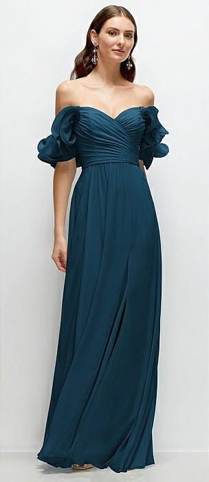 Off-the-Shoulder Basque Neck Maxi Dress with Flounce Sleeves in atlantic blue