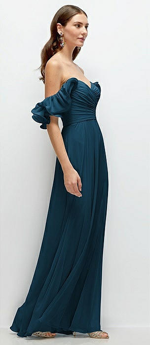 Chiffon Corset Maxi Dress with Removable Off-the-Shoulder Swags in atlantic blue