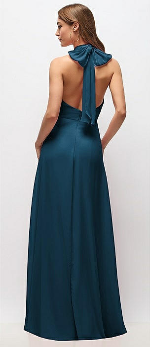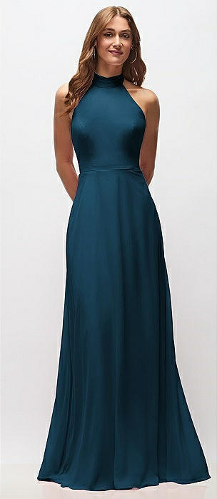 High Neck Halter Backless Maxi Dress in atlantic blue