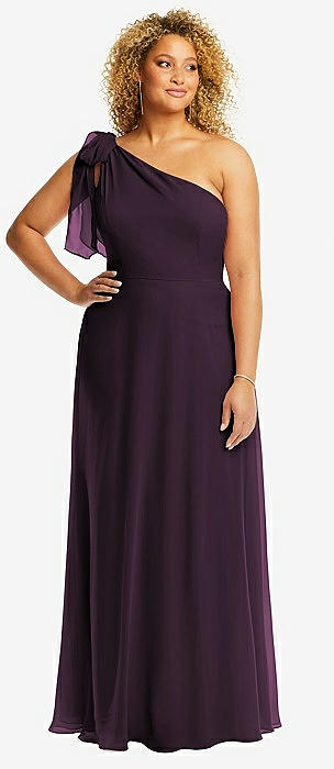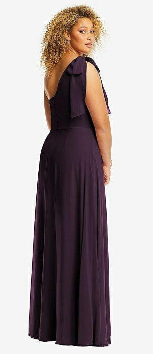 Chiffon One-Shoulder Maxi Dress with Circle Skirt in aubergine