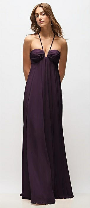 Empire Waist Chiffon Halter Maxi Dress with Convertible Spaghetti Straps in aubergine