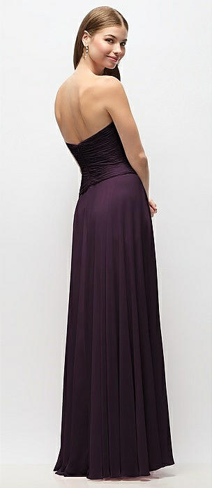 Strapless Pleated Surplice Chiffon Maxi Dress with A-Line Skirt in aubergine