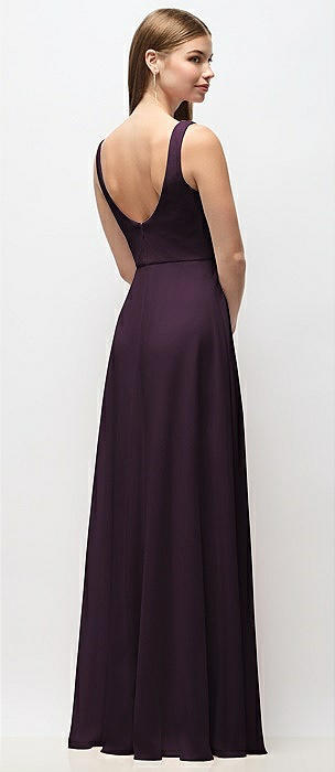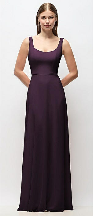 Scoop Neck Tank Strap Chiffon Maxi Dress in aubergine