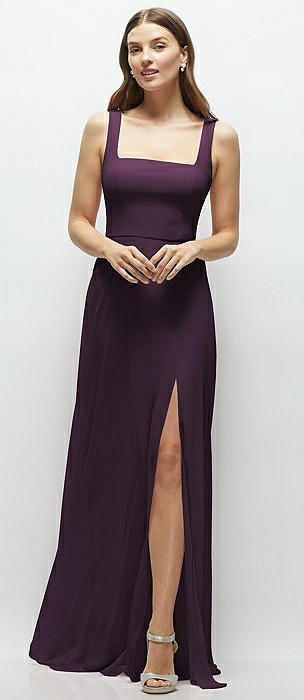 Square Neck Chiffon Maxi Dress with Circle Skirt in aubergine