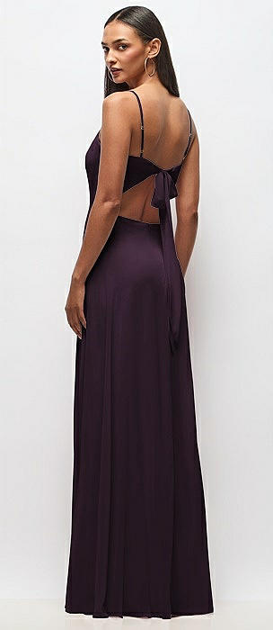 Tie-Back Cutout Maxi Dress with Front Slit in aubergine