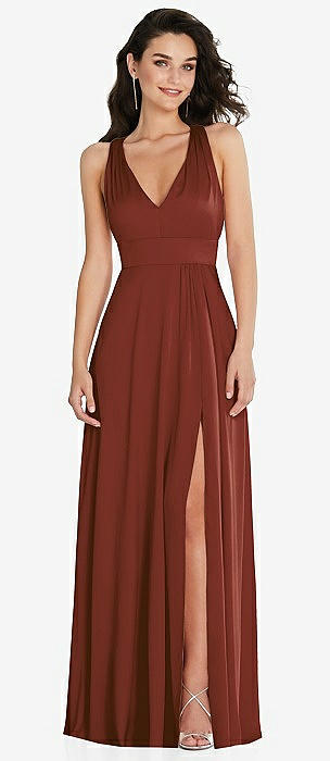 Deep V-Neck Chiffon Maxi Dress in auburn moon