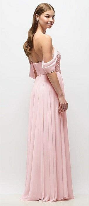 Off-the-Shoulder Basque Corset Chiffon Maxi Dress in ballet pink