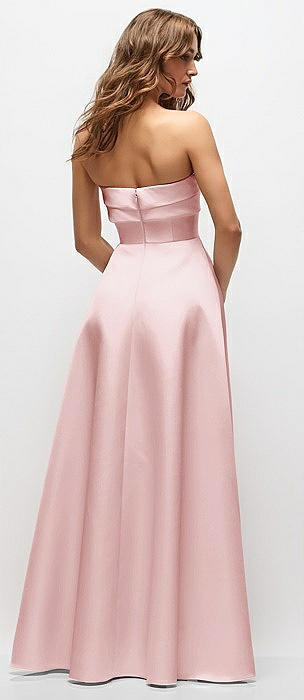 Strapless Draped Bodice Stretch Satin Column Maxi Dress in ballet pink