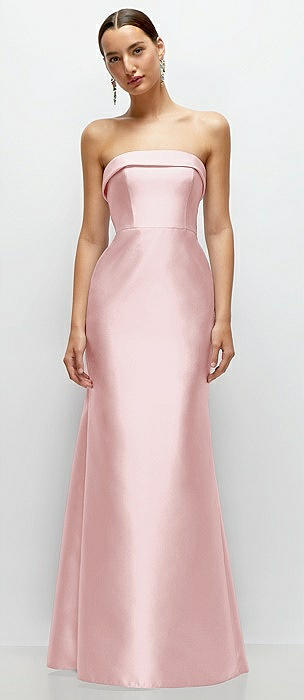 Strapless Cuff Neckline Satin Trumpet Gown in ballet pink