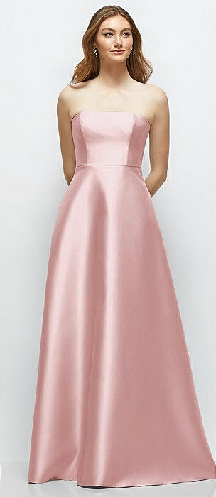 Strapless Bias Cuff Bodice Satin Gown with Pockets in ballet pink