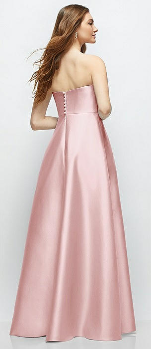 Strapless Satin Gown with Full Skirt and Covered Buttons at Back in ballet pink