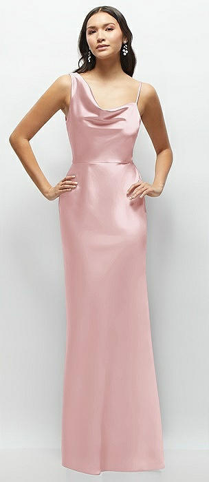 Cowl Neck Satin Maxi Dress with Adjustable Spaghetti Straps in ballet pink