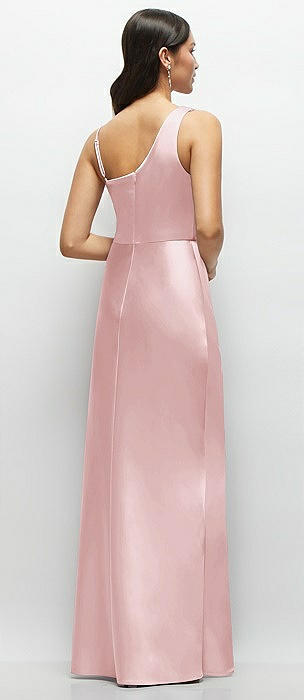 One-Shoulder Cat-Eye Neckline Fit and Flare Satin Maxi Dress in ballet pink