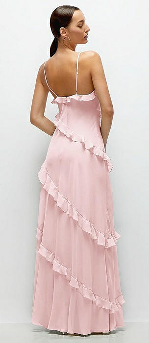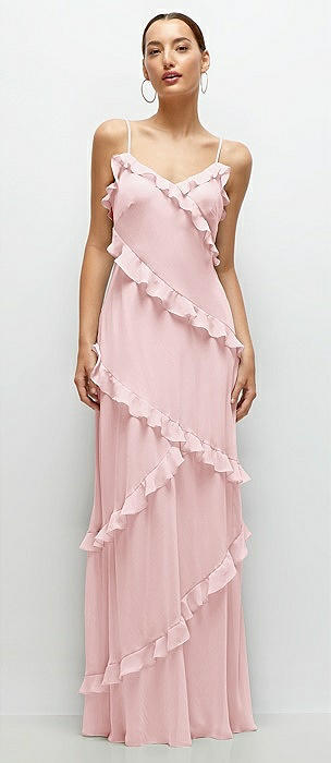 Asymmetrical Ruffle Chiffon Bias Slip Maxi Dress in ballet pink