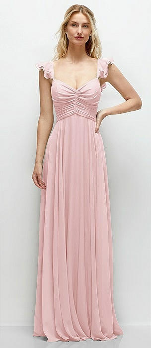 Ruffle Strap Chiffon Bustier Maxi Dress with Ruffle Hem A-Line Skirt in ballet pink