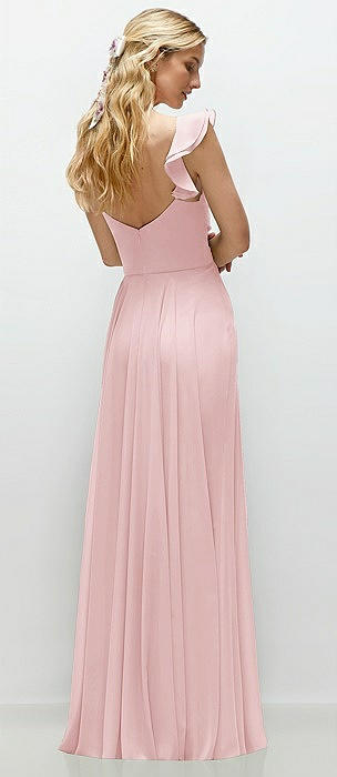 Convertible Ruffle Strap Chiffon Maxi Dress with Full Circle Skirt in ballet pink