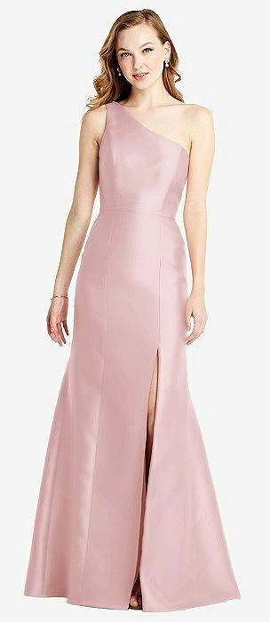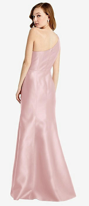 Bow One-Shoulder Satin Trumpet Gown in ballet pink