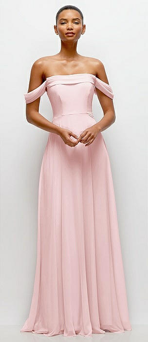 Off-the-Shoulder Draped Neckline Maxi Dress in ballet pink