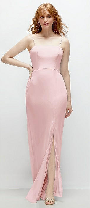Strapless Satin Gown with Draped Front Slit and Pockets in ballet pink