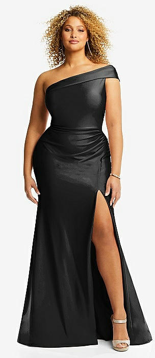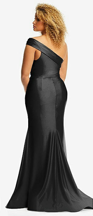 One-Shoulder Bias-Cuff Stretch Satin Mermaid Dress with Slight Train in black