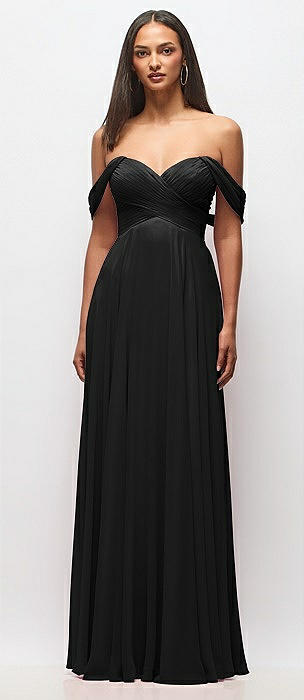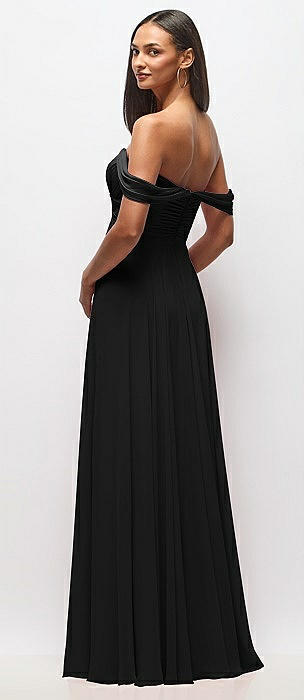 Off-the-Shoulder Draped Chiffon Maxi Dress in black