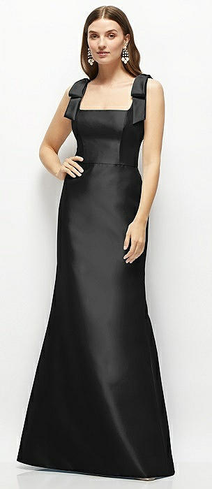 Satin Fit and Flare Maxi Dress with Shoulder Bows in black