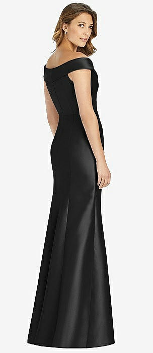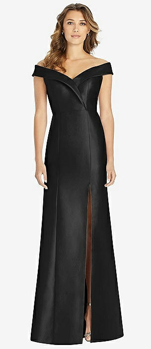 Off-the-Shoulder Cuff Trumpet Gown with Front Slit in black