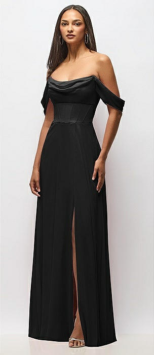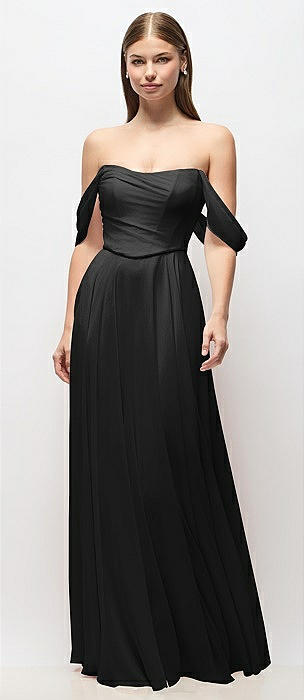 Off-the-Shoulder Basque Corset Chiffon Maxi Dress in black