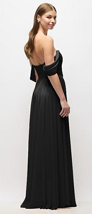 Chiffon Corset Maxi Dress with Removable Off-the-Shoulder Swags in black