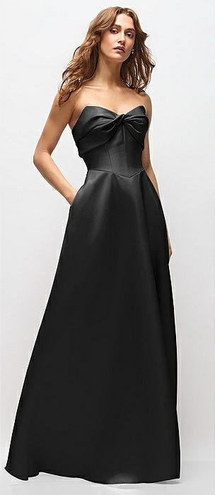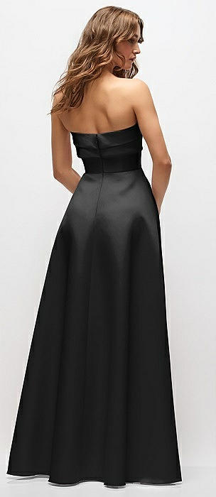 Strapless Bias Cuff Bodice Satin Gown with Pockets in black