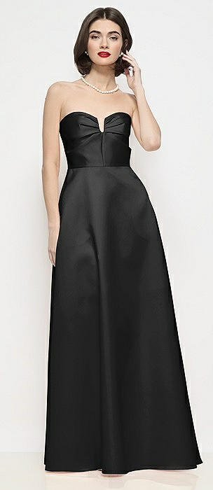 Strapless Pleated U-Wire Satin Column Maxi Dress in black