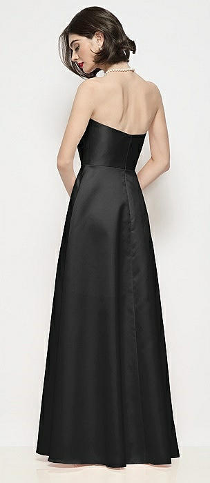 Strapless Pleated U-Wire Satin Maxi Dress with Semi Circle Skirt in black