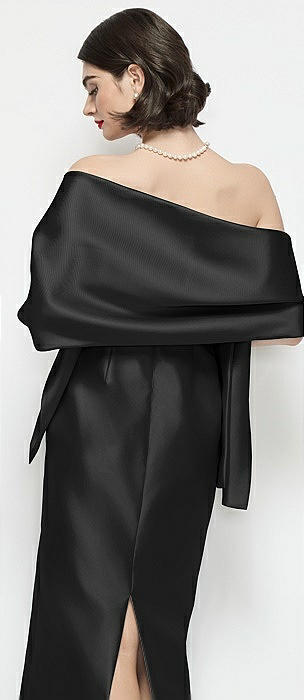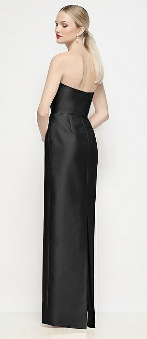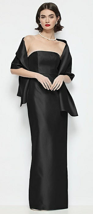Strapless Bow-Waist Satin Column Dress with Overskirt in black