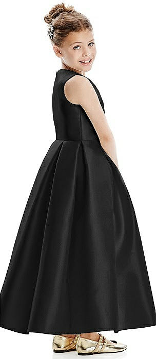 Princess Line Satin Twill Flower Girl Dress with Bows in black